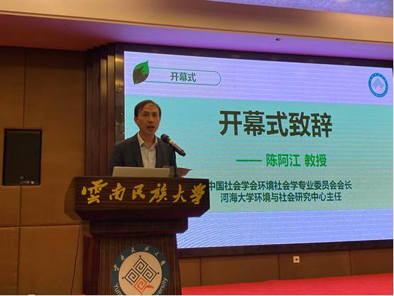 11月7日上午举行的大会开幕式上,云南民族大学校长张桥贵教授,中国社会学会副会长、教育部学位与研究生教育司司长洪大用教授,中国社会学会环境社会学专业委员会会长、122cc太阳集成游戏官方网站环境与社会研究中心主任陈阿江教授先后致辞。陈阿江教授在致辞中回顾了环境社会学专委会的发展历程、第五届中国社会学会环境社会学专业委员会以及2016年以来开展的主要工作,并期待中国环境社会学取得更好的发展成绩。