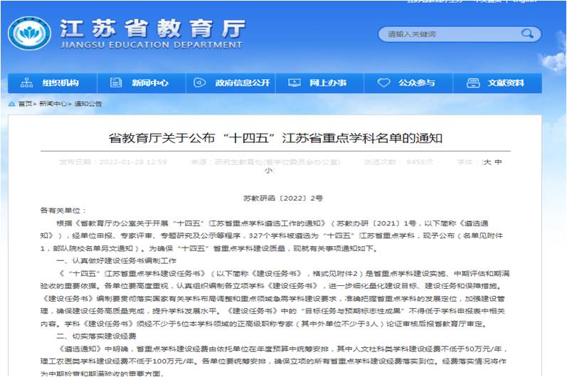 近日,江苏省教育厅公布了“十四五”江苏省重点学科名单,太阳集成官网社会学学科成功入选A类,公共管理学科成功入选B类。是本次我校申报成功的10个学科之中2个文科类学科。