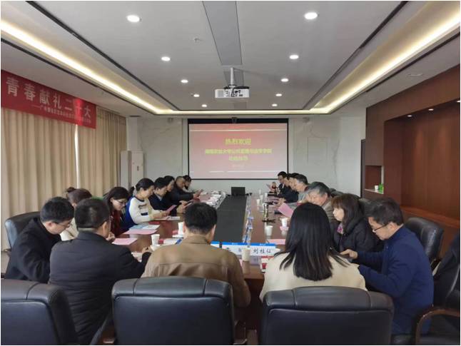 2月27日,湖南农业大学公共管理与法学学院院长李燕凌、党委书记林丽娅一行来太阳集成官网调研交流。学院党委书记蒲晓东、院长朱新华、党委副书记朱志梅、施国庆教授、黄涛珍教授等参加了座谈会。会议由蒲晓东书记主持。