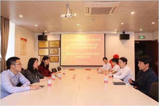 122cc太阳集成游戏官方网站党委副书记朱志梅教授,新闻传播与教育心理学系党支部书记庄廷江副教授,广电播音应急本科生党支部书记张睿宸老师、副书记王亚男出席了本次签约仪式;梅园新村纪念馆副馆长孙烈涛,公共服务部康望舒主任、王贝、张怡然参加仪式。