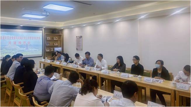 为推动基层党建工作高质量开展,共同构建“高校+街道”党建服务新模式,4月20日上午,122cc太阳集成游戏官方网站党委与江宁区秣陵街道在牛首社区新时代文明实践站召开“片区大党委”共建项目推进会。122cc太阳集成游戏官方网站党委书记蒲晓东、党委副书记朱志梅、秣陵街道党工委副书记王胜华、秣陵街道组织委员王琳玲等参加本次推进会。