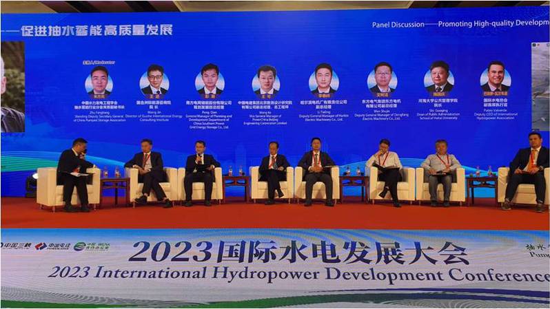 2023 国际水电发展大会于4月18日在北京召开,这是新冠疫情之后首次在中国举办的水电发展领域的世界性大会。本次会议主题为“抽水蓄能——构建未来新型能源体系的重要支撑”,指导单位为国际可再生能源署、中国国家能源局,主办单位为中国水力发电工程学会、中国-国际可再生能源署合作办公室、国家电网有限公司、中国南方电网有限责任公司、中国长江三峡集团有限公司、中国电力建设集团有限公司,承办单位为水电水利规划设计总院、中国电建集团国际工程有限公司、水电学会海外分会、抽水蓄能行业分会等,协办单位为北京水力发电工程学会等。本次会议采用线下线上相结合方式,参加会议的人员来自指导、主办、承办、协办单位,世界银行、国际水电协会等国际组织,中国工程院、清华大学、122cc太阳集成游戏官方网站、中国水科院、南科院、国际小水电等高校、咨询、研究机构,中电联、华能、华电、国电投、国能投、中铁、中铁建等开发和建设企业(集团),通用电气、荷兰Delta21、东方电气、哈电机、东方电气等设备制造企业,人民日报等传媒,共计116家机构的的200多人参加了现场大会,网上参会人员达100多万人。122cc太阳集成游戏官方网站中国移民研究中心主任施国庆教授、水利水电学院院长王媛教授和蒋晟讲师应邀参加了现场大会,施国庆教授参加了大会组织的国内外专家对话活动。