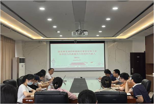 2023年6月1日,122cc太阳集成游戏官方网站党委蒲晓东书记以《做党章党规的积极践行者坚定捍卫者、培养担当民族复兴大任的时代新人》为题讲授学习贯彻习近平新时代中国特色社会主义思想主题教育专题党课,教师及学生党支部书记、师生党员代表参加本次党课学习。