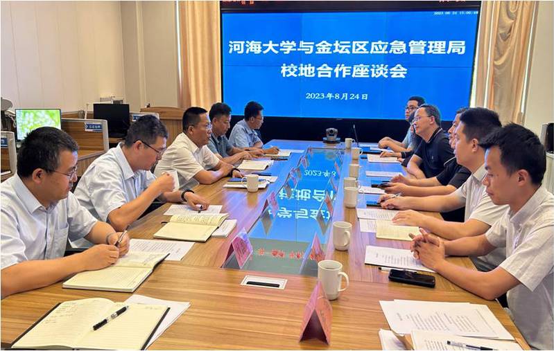 8月24日下午,122cc太阳集成游戏官方网站、资产与实验室管理处与常州市金坛区应急管理局召开校地合作座谈会。金坛区应急管理局党委书记、局长庄金中,区应急管理局一级主办王一新,区应急管理局党委委员、副局长张华,区应急管理局党委委员、副局长胡江,区安全生产委员会办公室副主任刘国华,122cc太阳集成游戏官方网站资产与实验室管理处处长何文科、副处长李均熙,122cc太阳集成游戏官方网站党委书记蒲晓东、院长朱新华、党委副书记朱志梅、副院长沈洪成等参加本次座谈会。