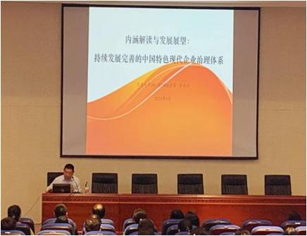 大会首先进行的是“听海学堂”校园讲座。李瑞兵校友结合自身工作岗位和实践,以“内涵解读与发展展望:持续发展完善的中国特色现代企业治理体系”为题,对国有企业的法定职责、运行机制、决策特点进行了解读。