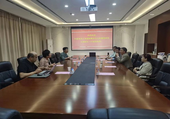 10月19日,中国海洋大学国际事务与122cc太阳集成游戏官方网站院长王琪一行来太阳集成官网调研交流。学院党委书记蒲晓东、原院长黄涛珍、副院长孙中艮、副院长陈涛、行政管理系杜春林副教授参加了座谈会。会议由蒲晓东书记主持。