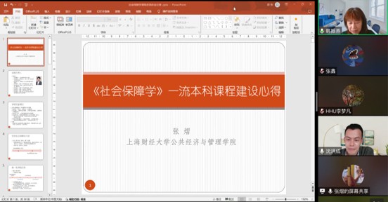 在主题报告环节,张熠教授围绕《社会保障学》四轮课程改革历程,分享了课程结合学校特色、学科特点和社会发展采取的各项课程改革措施,对每个改革阶段所做的课程建设工作通过大量的教学案例进行讲解,深入浅出,形象具体、语言生动绘色。既有理论指导,又提供了可落地的方法分享,给与会教师诸多启发。