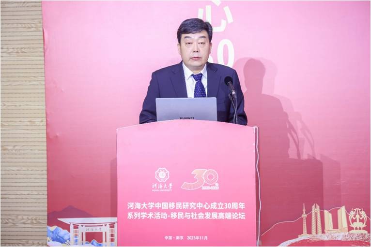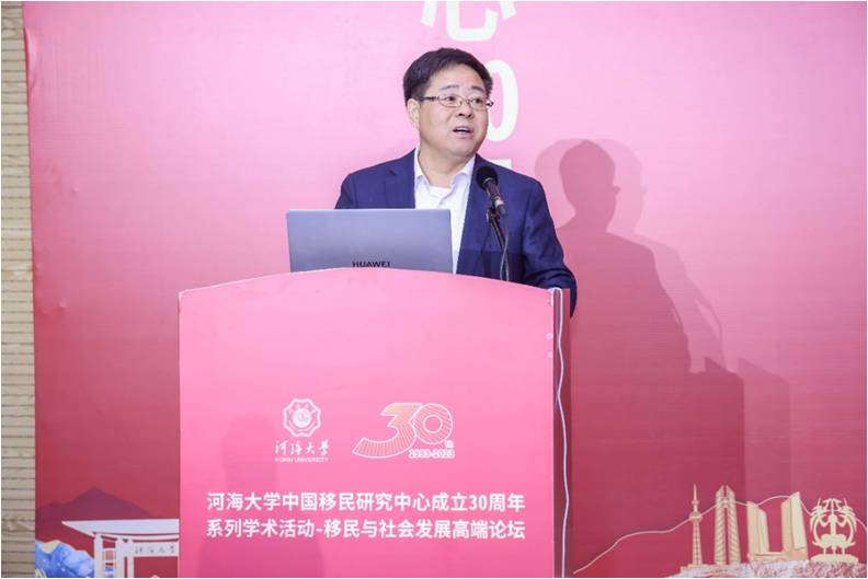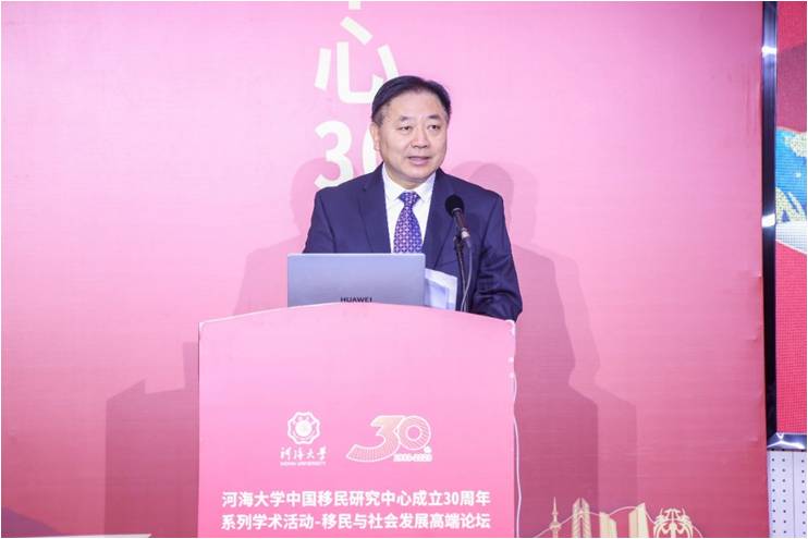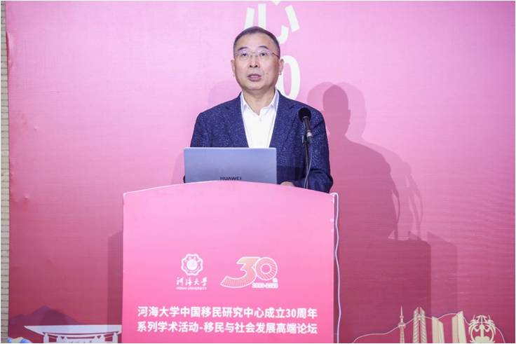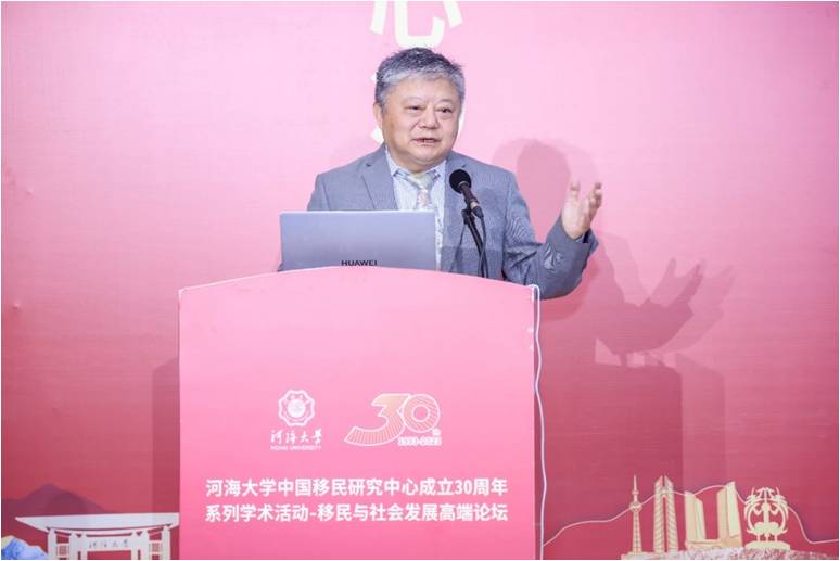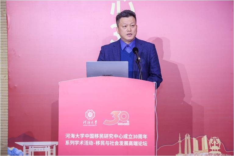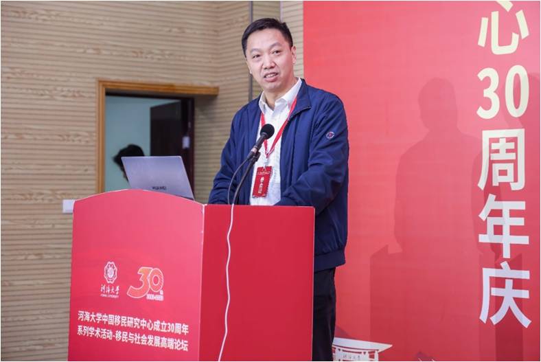 施国庆教授代表中国移民研究中心系统回顾了水利部水库移民经济研究中心,以及122cc太阳集成游戏官方网站中国移民研究中心的建立和发展历程,总结了30年来在人才培养和科学研究等各方面的成就。施国庆教授提出,中国移民研究中心在专门研究机构成立、学科建设、人才培养等方面创造了多项世界第一。同时表态:中国移民研究中心团队将会承前启后,在人才培养和科学研究等方面取得更多成果。