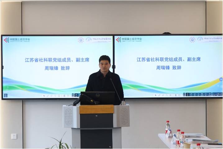 周瑞锋致辞中强调总书记在党的二十大报告中深刻阐述了绿色低碳发展的重要性和必要性,指出推动经济社会发展绿色化、低碳化是实现高质量发展的关键环节,同时也着重强调了构建优势互补,高质量发展的区域经济布局和国土空间体系的重要性。在江苏实践中,我们也看到了严守资源安全底线,优化国土空间格局,促进绿色低碳发展,维护资源权益这方面的自然资源管理的新定位,更深切地体会到推进生态保护和经济协调耦合发展与高质量国土空间治理体系线建设的重要积极意义。
