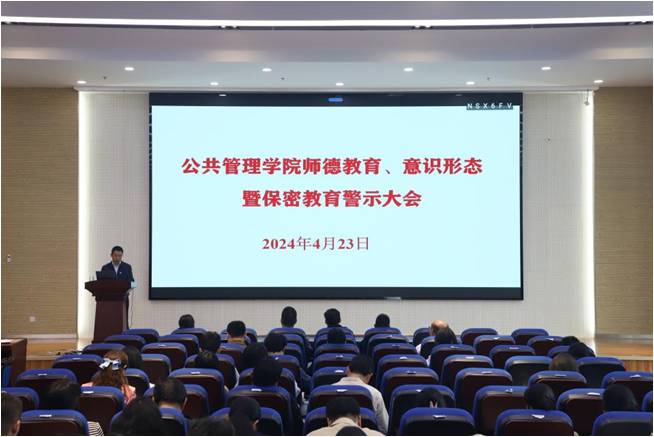 4月23日,122cc太阳集成游戏官方网站党委召开师德师风、意识形态暨保密教育警示大会,深入学习贯彻习近平总书记关于党纪学习教育的重要讲话和重要指示精神,全面启动学院党纪学习教育工作。