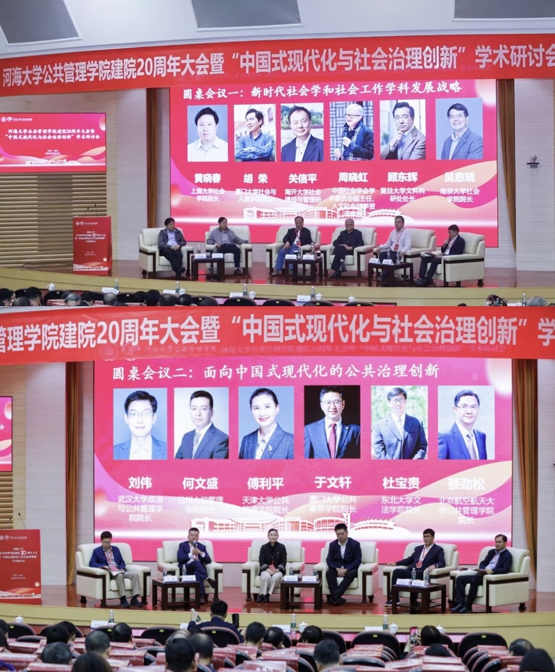国社会学会原会长、江苏省政府参事室原主任宋林飞,国务院学位委员会公共管理学科评议组成员、东北大学张雷教授分别做了主旨报告。随后举行了“新时代社会学和社会工作学科发展战略”“面向中国式现代化的公共治理创新”主题圆桌论坛。