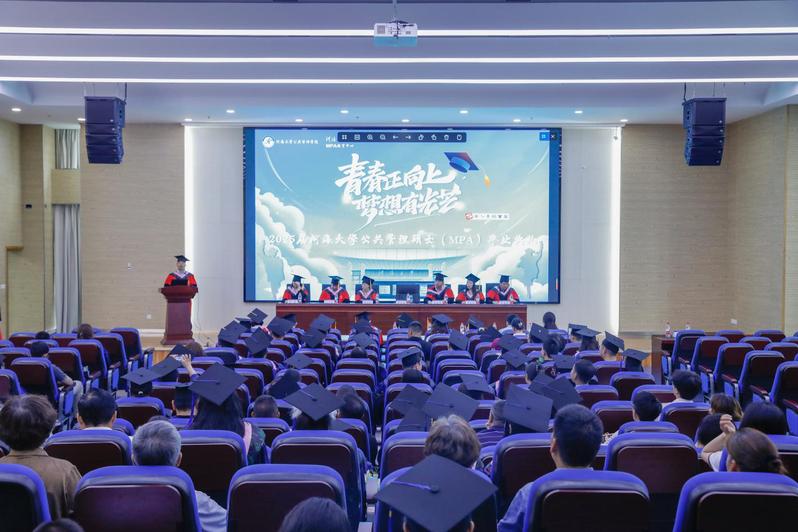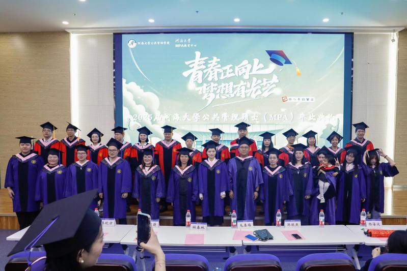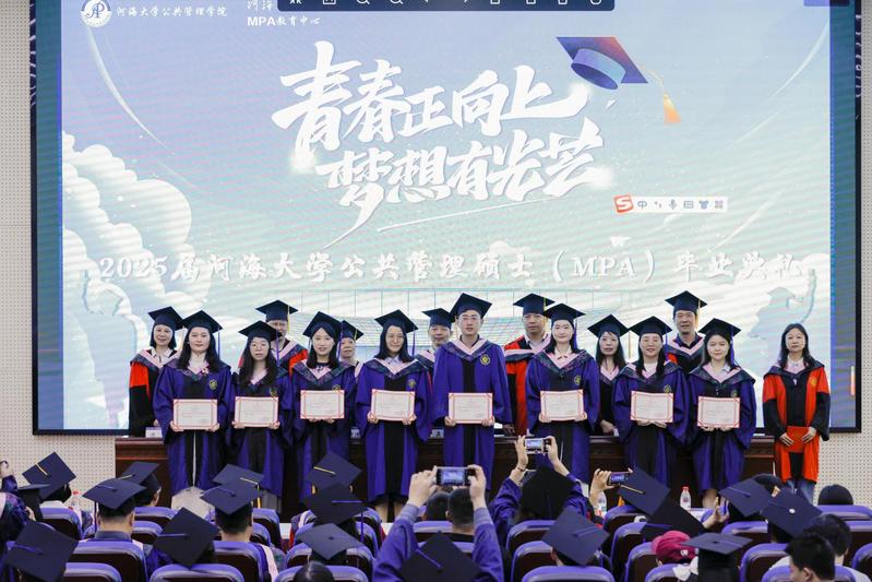 6月月20日上午,河海大学2025届MPA毕业典礼在厚学楼208报告厅隆重举行。122cc太阳集成游戏官方网站党委书记吴宝海、122cc太阳集成游戏官方网站院长朱新华教授、MPA教育中心主任黄涛珍教授、公共管理学院党委副书记朱志梅教授、公共管理学院副院长孙中艮教授、公共管理学院副院长曹海林教授、公共管理学院副院长陈莉教授,MPA导师代表、2025届MPA毕业生、MPA校友会代表、毕业生家属代表参加了本次毕业典礼,典礼由MPA教育中心副主任范仓海主持。